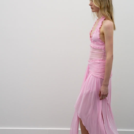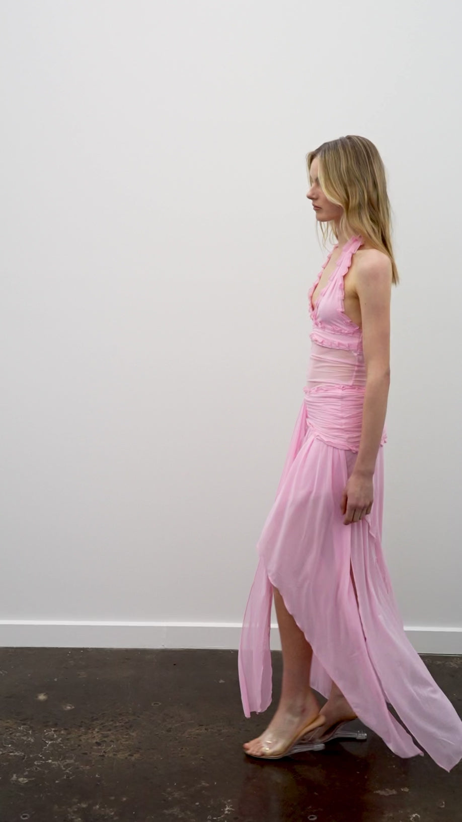 The Bianca Set is designed to move with your body, this elegant two-piece skims the figure in soft, sheer mesh for a weightless feel. The halter top features gentle ruching, creating a flattering, contoured bodice that elongates the silhouette. The layered skirt falls with effortless fluidity, finished with delicate ruffle detailing for subtle movement and depth with every step. Versatile by design, wear the pieces together for a striking statement or separately for seamless day-to-night styling.