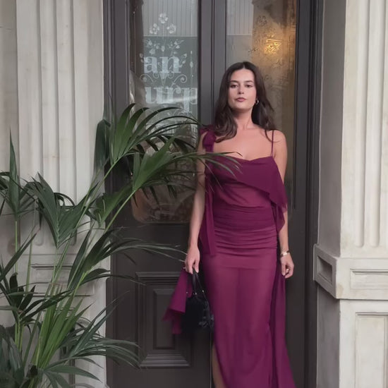 This elegant mesh set is a backless design held up by the bust area & delicate shoulders straps, this piece is a hand-draped piece which really creates such a beautiful silhouette. The gown features a bow detail on one shoulder, adding a feminine touch to the overall look. The bust and midsection are lined, providing coverage while maintaining the sheer allure of the mesh fabric. The gown’s flowing shape adds a sense of movement and grace, making it a stunning choice for any formal event or special occasion. This piece is designed for those who appreciate the beauty of minimalistic yet impactful design.