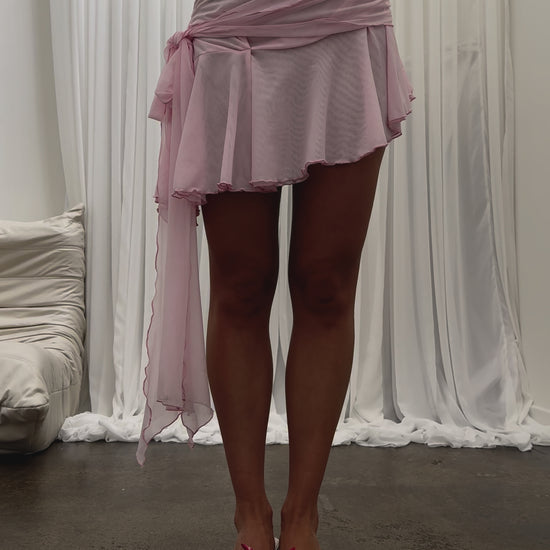This asymmetrical ruffle mini dress is a playful and flirty take on our classic wrap style. Featuring a unique mini-length, the dress is crafted with a flowing asymmetrical ruffle hem that adds movement and charm to the silhouette. The bandeau top is delicately wrapped, while the skirt ties into a sweet bow, creating an eye-catching detail at the side. Perfect for a casual summer day or a night out, this dress effortlessly combines elegance with a youthful vibe. Whether you're dancing the night away or enjoying a beachside dinner, this piece is sure to make a statement.