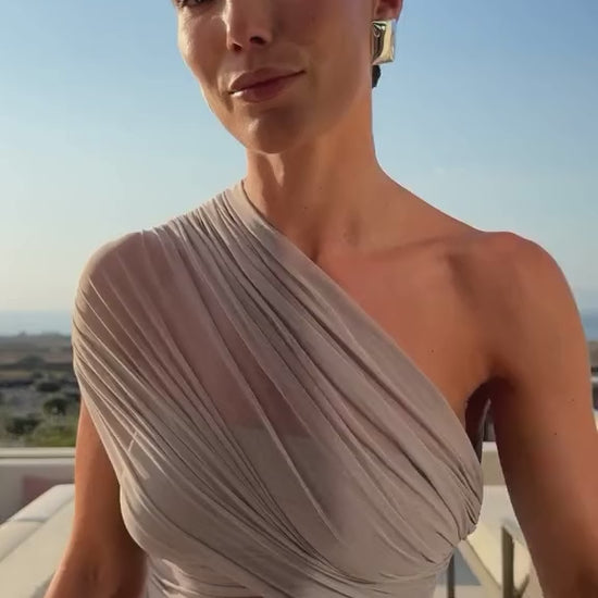 This high-slit mesh maxi dress with a train is a bold and captivating piece. Similar in design to our Rina & Bella dresses, this version features a daring high slit and an elegant long train that trails behind, adding an extra touch of glamour. The top is lined for coverage and support, while the sheer bottom is designed to be worn with booty shorts, creating a striking contrast between the opaque and transparent elements. For those who prefer additional coverage, the skirt can be lined upon request—simply specify via email reference your order number.